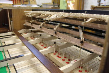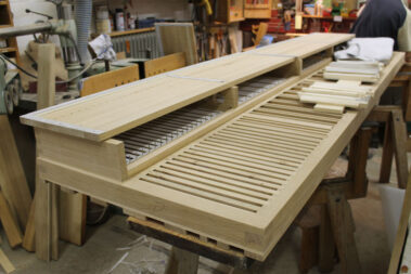 Bei Neubauten setzen wir auf Vollgehäuse, Kranzrahmen und Resonanzkette. Die Spielmechanik aus Holz ist heute genauso selbstverständlich wie die Freihaltung von Kunststoffen und Plastikmaterial. Aus vieljähriger Erfahrung können wir sagen, dass die originären Werkstoffe wie Holz und Eisen, Leder und Messing, Blei und Zinn für die Qualität einer Orgel nicht zu ersetzen sind. So bleibt das Instrument wertbeständig und kann die Jahrzehnte überdauern.